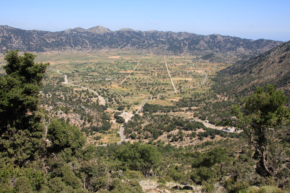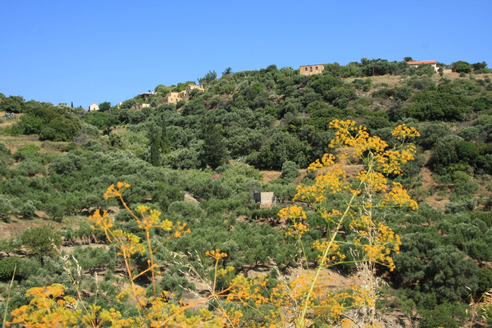 Kreta: Et kig fra vejen ned gennem oliven plantagen.