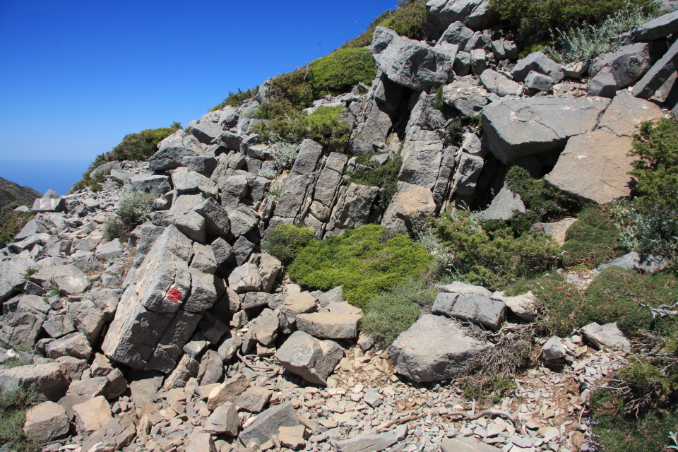 Kreta: E4 skiltet viser vej ned ad skråningen.